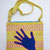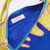 Applikationen in blauem Polstersamt mit Neonpinkem Garn umstickt