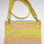 Kleine Umhängetasche in fliederfarbenem Vintageglitzerstoff (von einem 60er Jahre Kleid) Applikation in neonoranger Baumwolle
