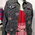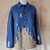 Taillierte schwarze Vintage Jeans-Jacke mit vielen Augen-Applikationen
