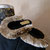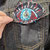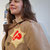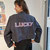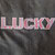 Applikation LUCKY auf dem Rücken ist aus dem Stoff eines glitzernden Vintagekleides genäht.