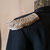 Das handgefertigte mit Perlen bestickte Glückskleeblatt am Revers ist mit einer Broschierung