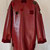 Dunkeloter Wendemantel aus Kunstleder mit ausgeschnittenen und wieder aufgenähten Kreuzen.